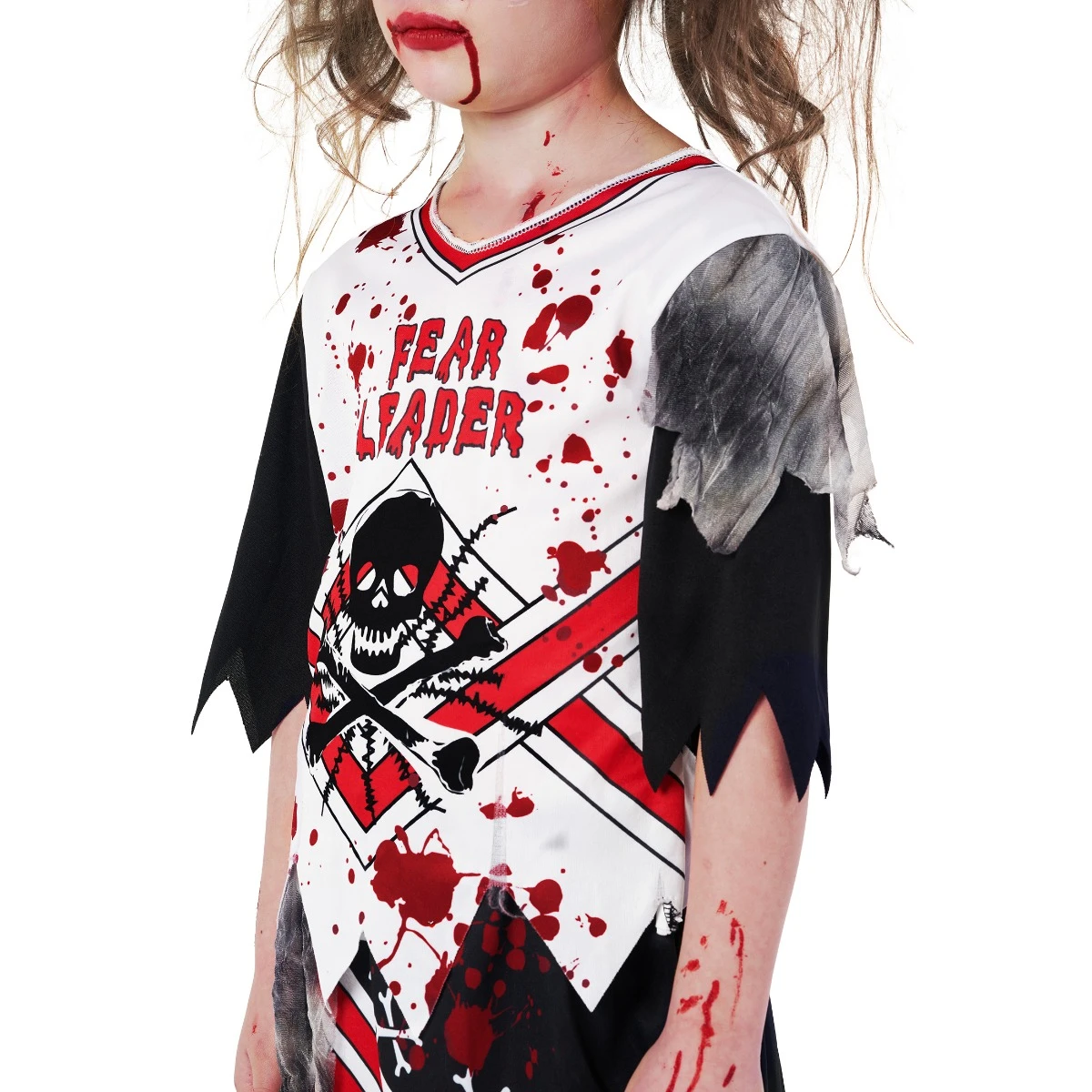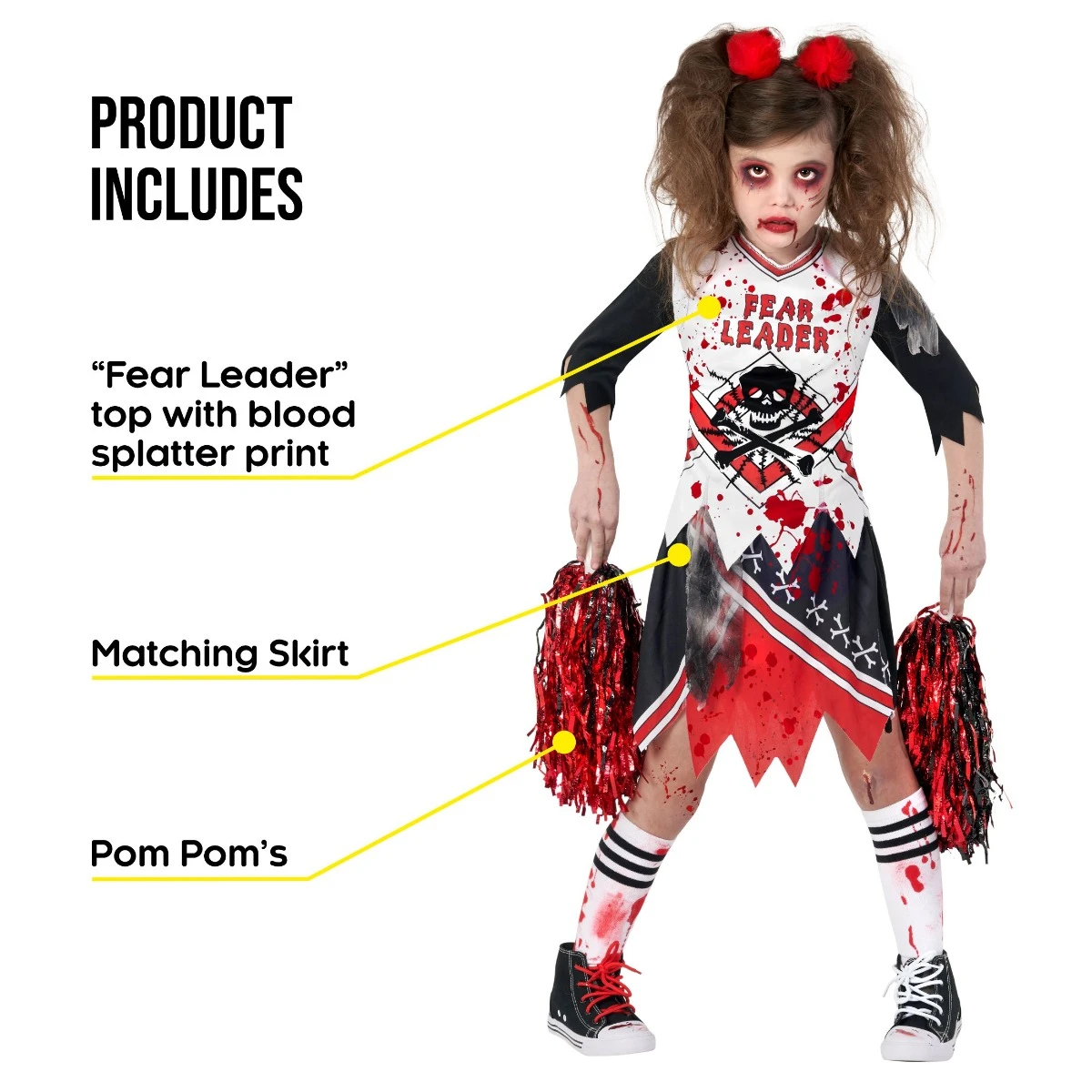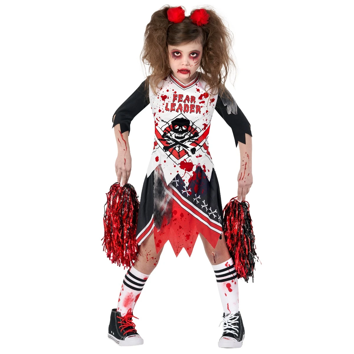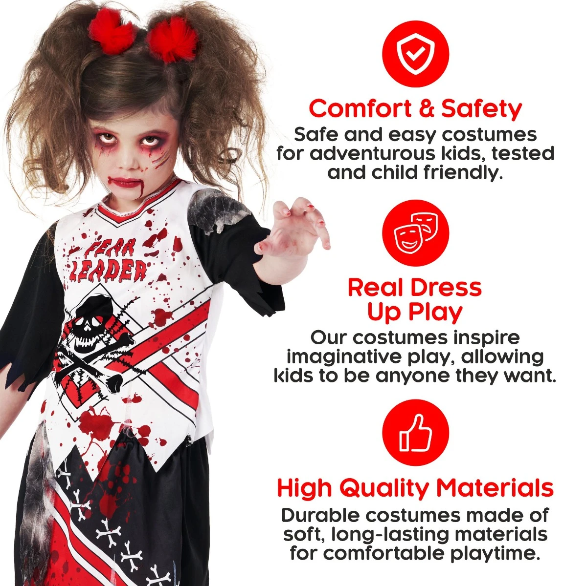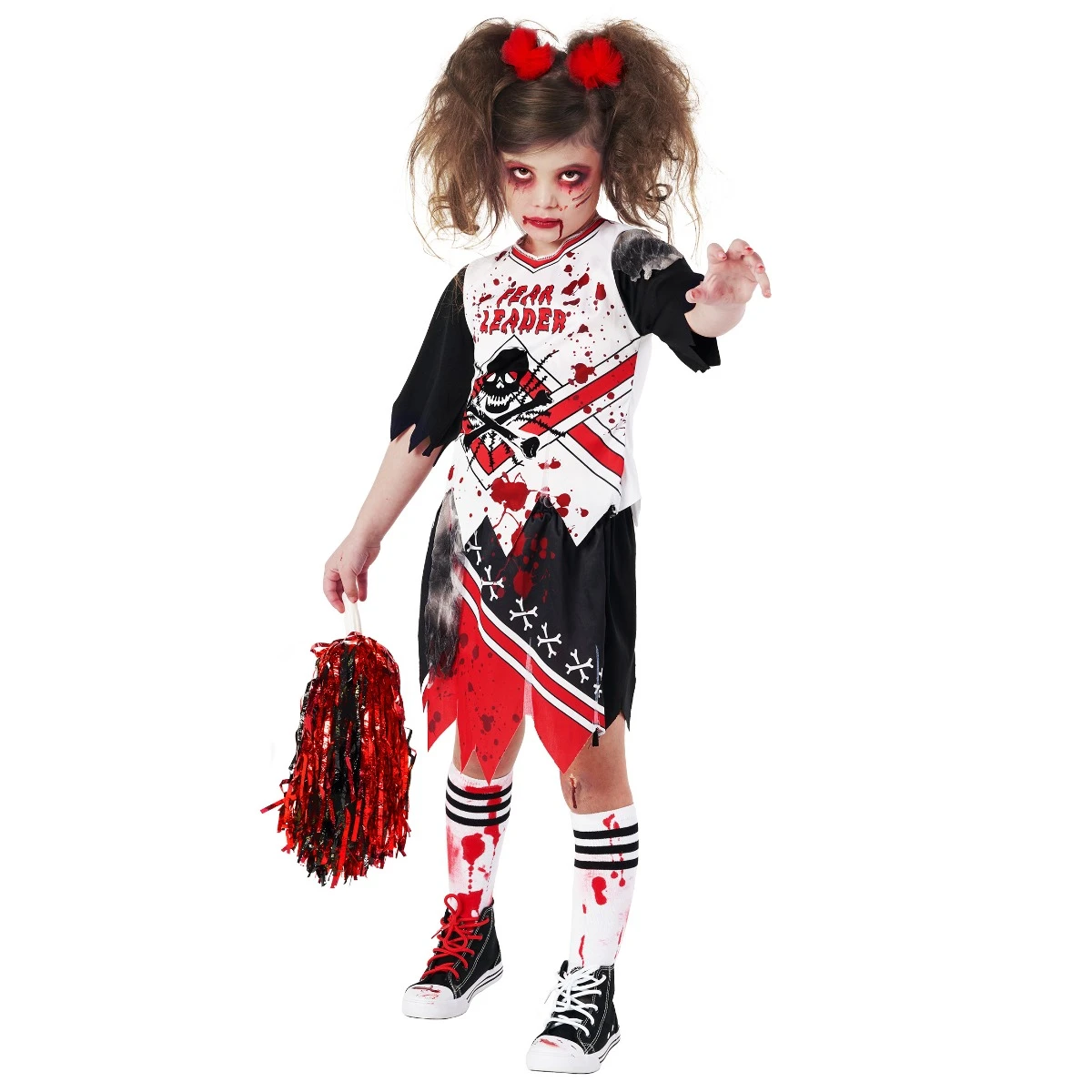 Questo costume di Halloween per ragazze è una variante divertente, spaventosa e fantastica del classico costume di cheerleader americano. Il costume da cheerleader di zombi per bambini include un top dettagliato con un effetto di sangue, una gonna e pompon abbinati, in modo che tuo figlio possa mostrare il suo spirito scolastico (mentre lei ama il cervello dei suoi compagni di classe). Ordina oggi quello di tuo figlio.