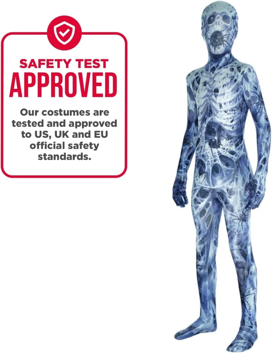 Include una Morphsuit pezzo unico con cappuccio in velcro per una facile rimozione. Materiale di alta qualità elastico in 4 direzioni, cerniera resistente e cuciture rinforzate nei punti di stress.Questo costume per bambini è disponibile in 3 taglie: S (91 – 104 cm), M (105 – 119 cm) e L (120 – 137 cm). Usare l’immagine di riferimento per la misura delle taglie. Costume facile da indossare, resistente e di alta qualità. Si può bere, vedere e respirare attraverso la stoffa. Lavare in acqua fredda, asciugare all’aria.Sicuro per i bambini: rispetta gli Standard di Sicurezza EU e UK ed ha il marchio di sicurezza CE.