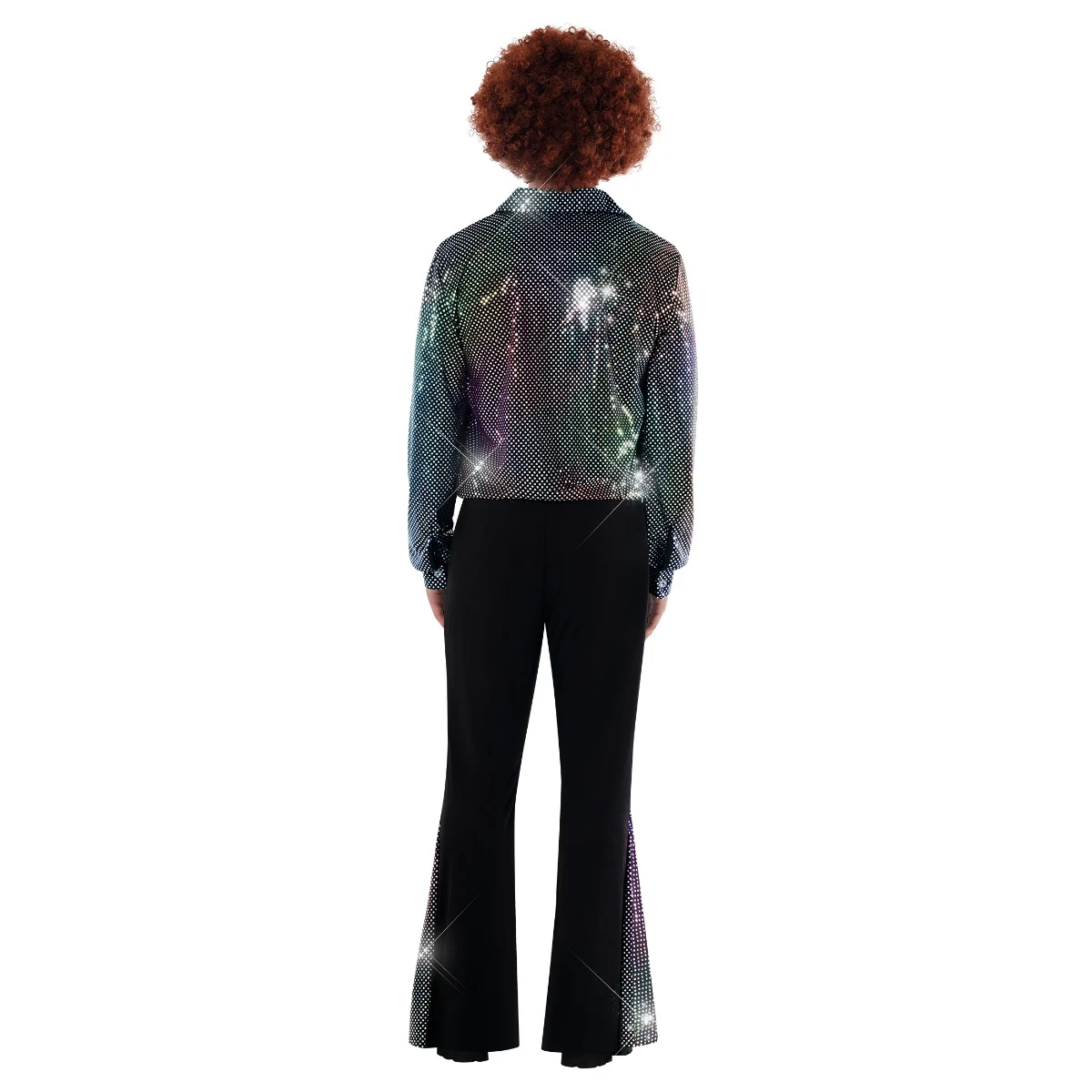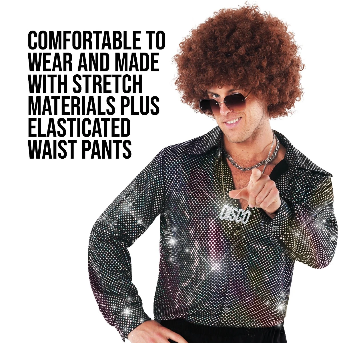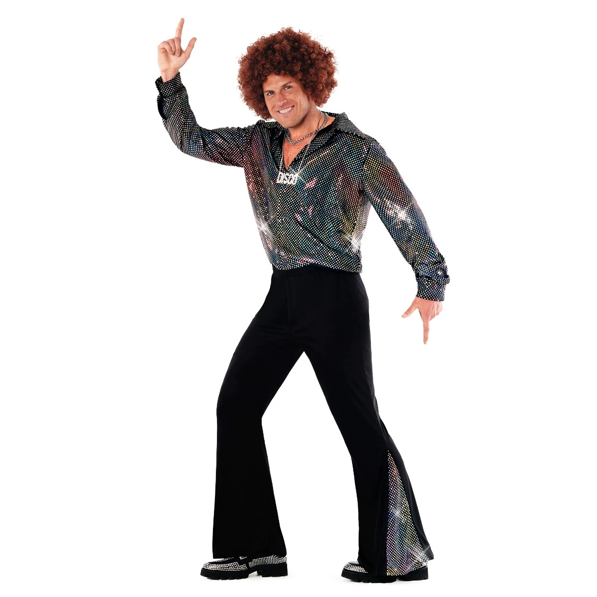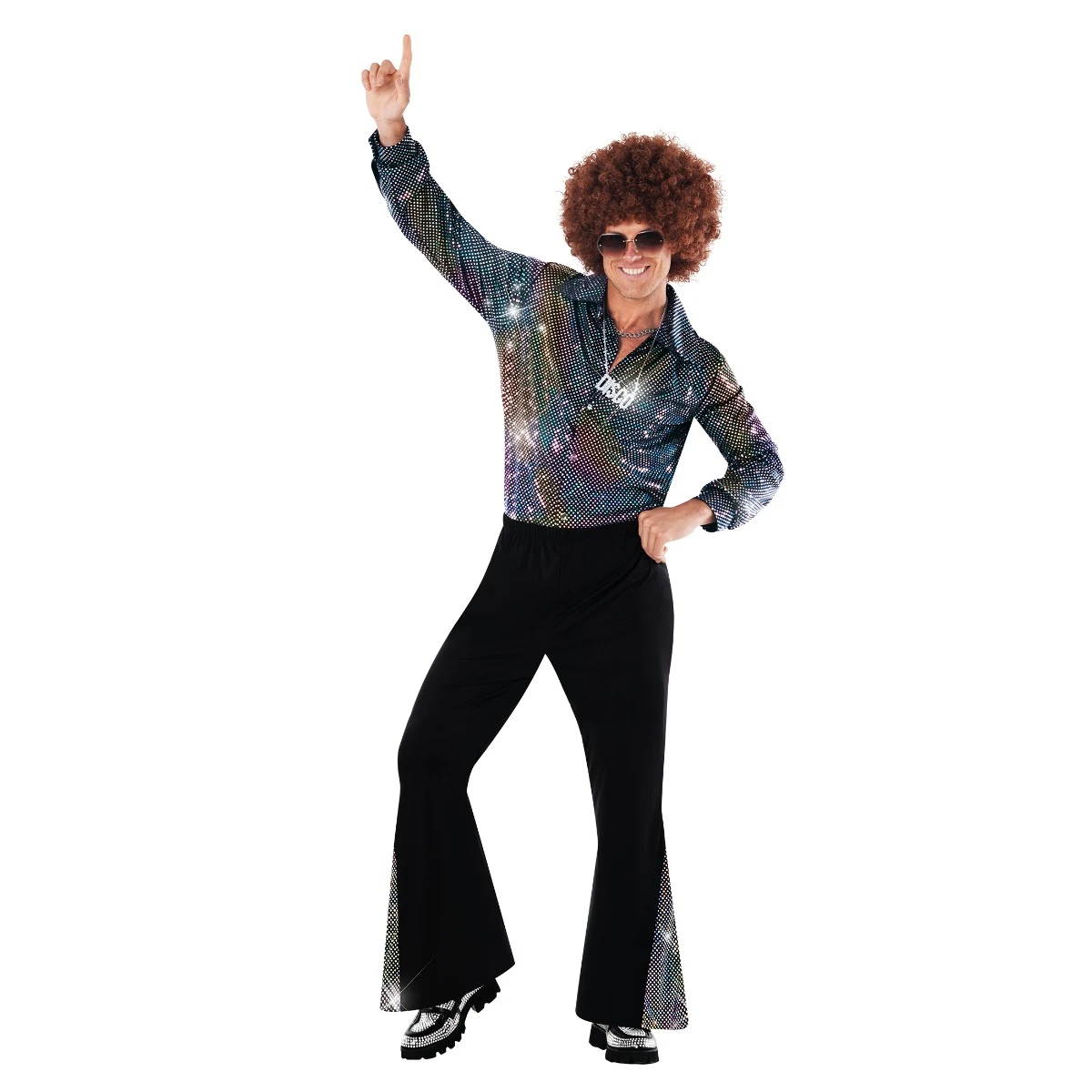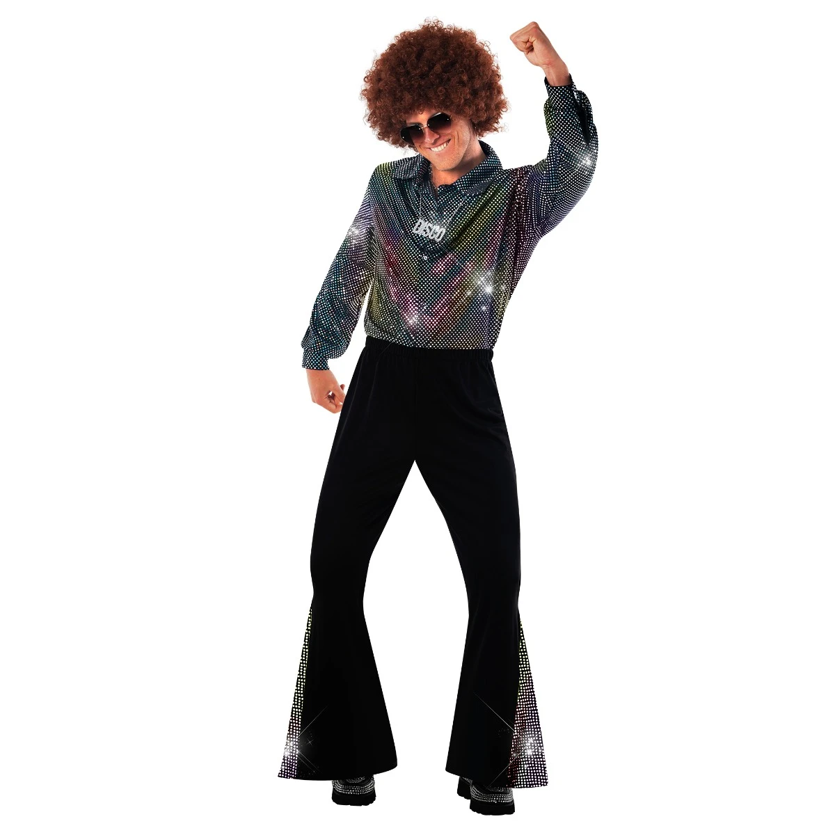 Questo travestimento ispirato alla discoteca lo porta a tornare alle tracce di danza degli anni ’70. Herren Discoe Discoe Discoe include una camicia luminosa e pantaloni lampeggianti. Per completare il tuo cambio di discoteca, questo costume include anche una parrucca afro e occhiali da sole. Preparati a illuminare la notte: ordina il costume da discoteca e preparati su come ballare Travolta.