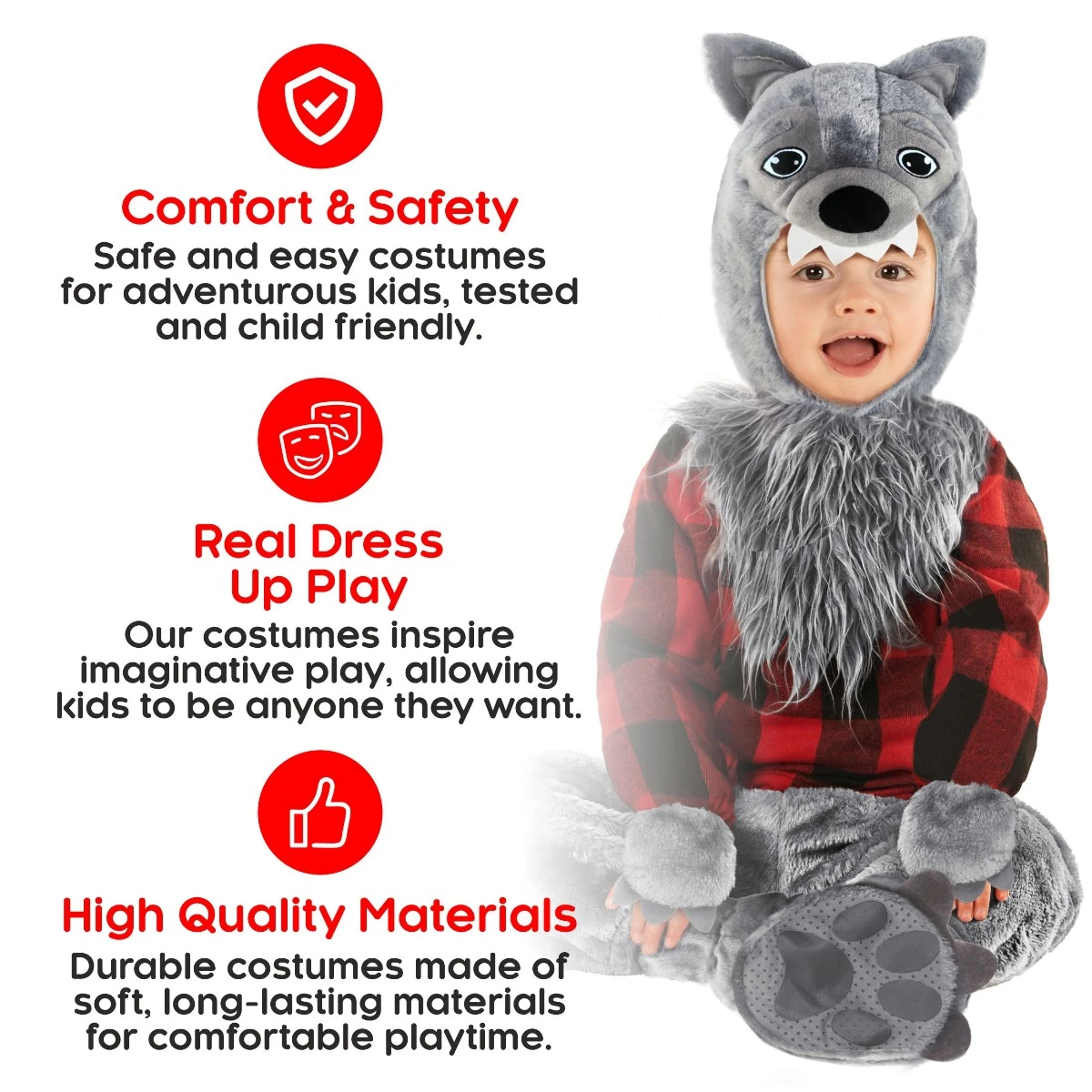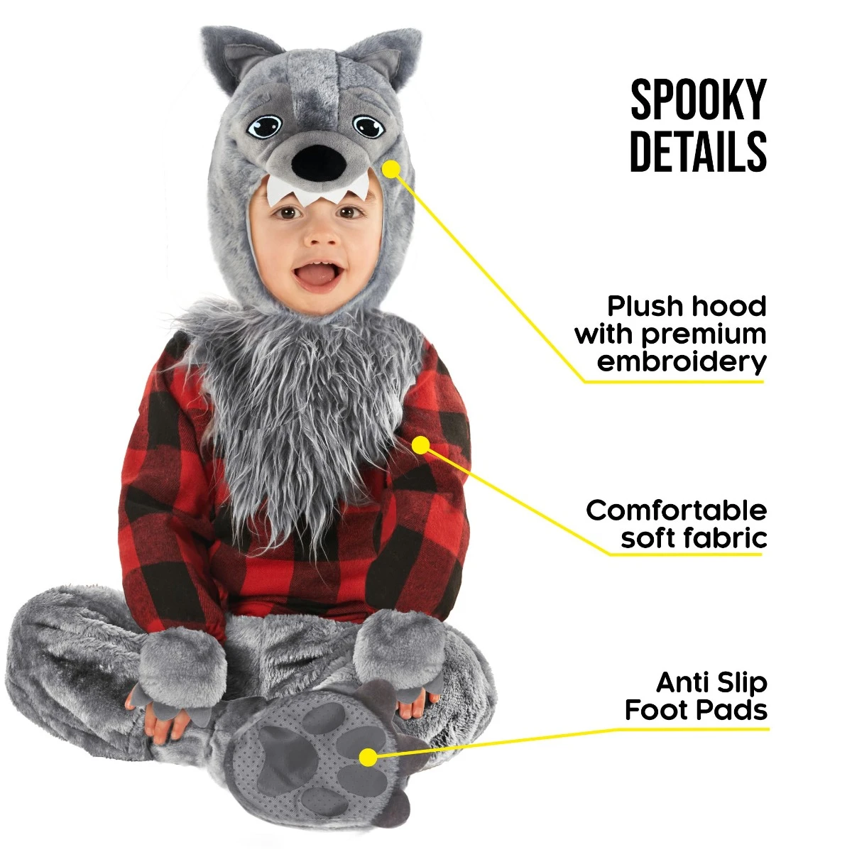 Questo costume è perfetto per i più piccoli cuccioli di Wolven! È realizzato in materiale morbido e confortevole e ha una carina pelliccia grigia con macchie bianche. Ha anche un cappuccio con orecchie e una coda. Questo costume è perfetto per una festa di Halloween o una festa di travestimento.