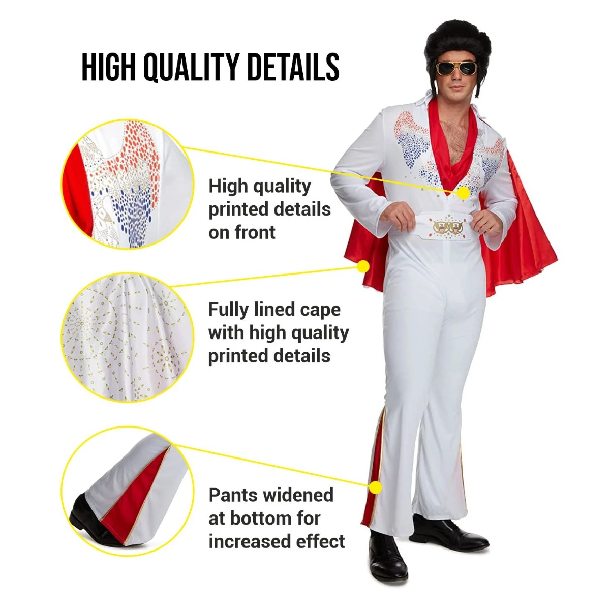 Il costume include: Tuta con mantella, cintura, sciarpa.Il costume è disponibile in taglia M, L ed XL. Usare l’immagine di riferimento per la misura delle taglie.Materiali di alta qualità, facile da indossare e resistente. Costume dettagliato con stampe di alta qualità. Il mantello è completamente foderato e stampato sul retro.La nostra Azienda è stata fondata nel 2009 da 3 amici appassionati di costumi. Abbiamo uffici in USA, UK ed Europa con centinaia di design che rispettano il massimo degli standard di qualità.