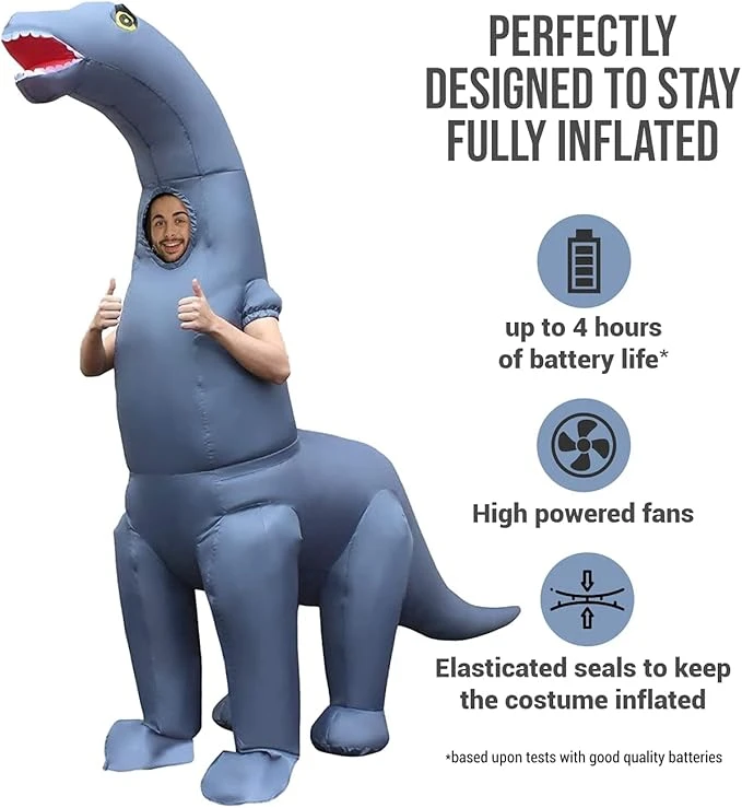Il costume include: Costume gonfiabile con ventola ad aria incorporata (batterie x 4 AA richieste e non incluse). Il costume è disponibile in Taglia Unica: veste dai 165cm ai 188cm di altezza. Usare l’immagine di riferimento per la misura delle taglie. Materiali di alta qualità, facile da indossare e resistente. Include una pratica tasca esterna! La nostra Azienda è stata fondata nel 2009 da 3 amici appassionati di costumi. Abbiamo uffici in USA, UK ed Europa con centinaia di design che rispettano il massimo degli standard di qualità.