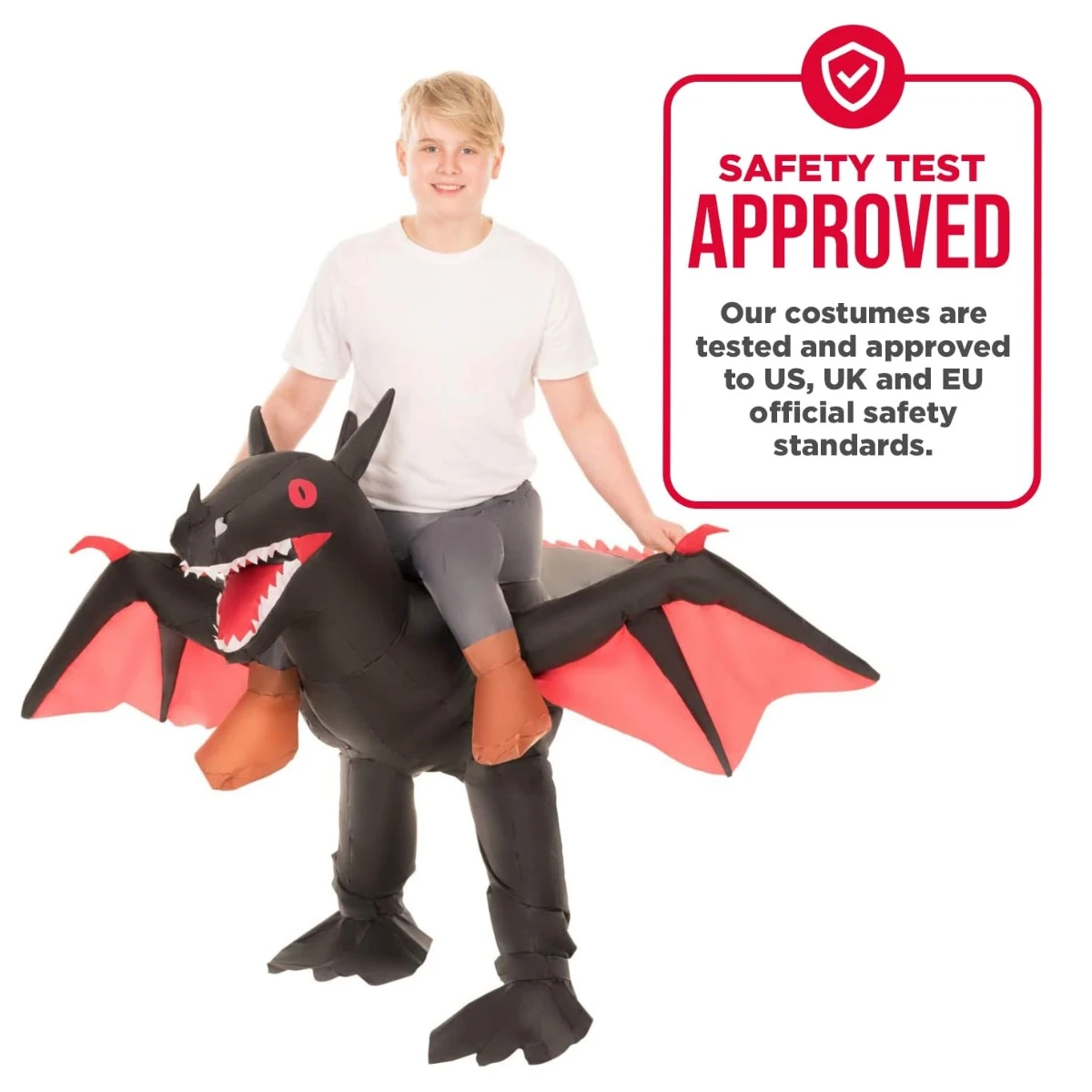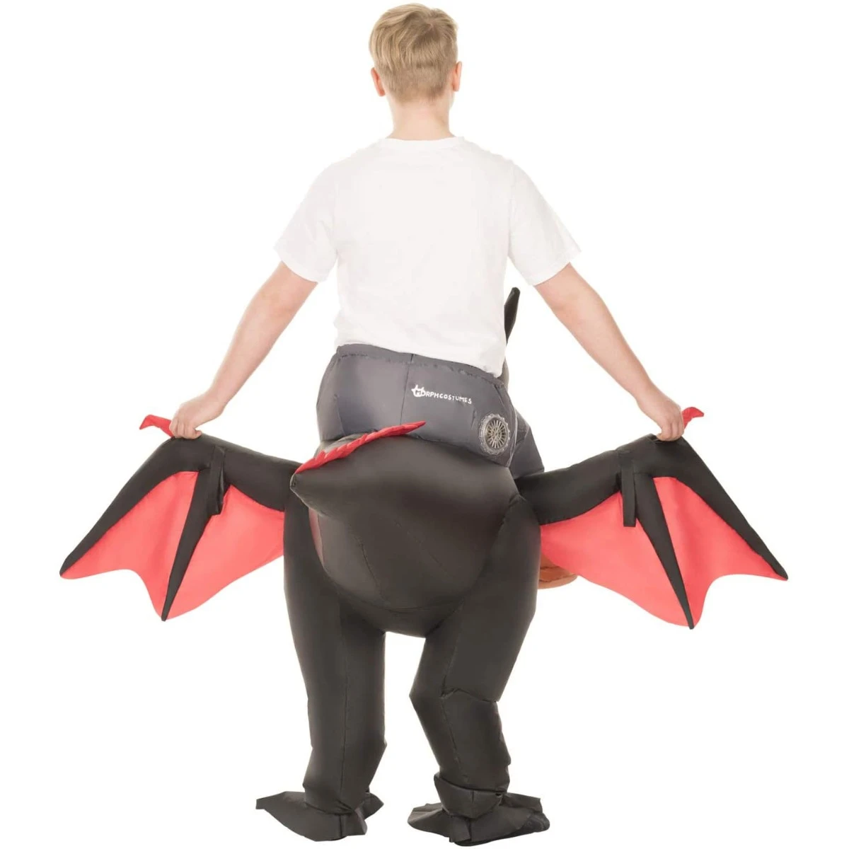 Costume Gonfiabile Drago Nero Cavalcabile Bambino