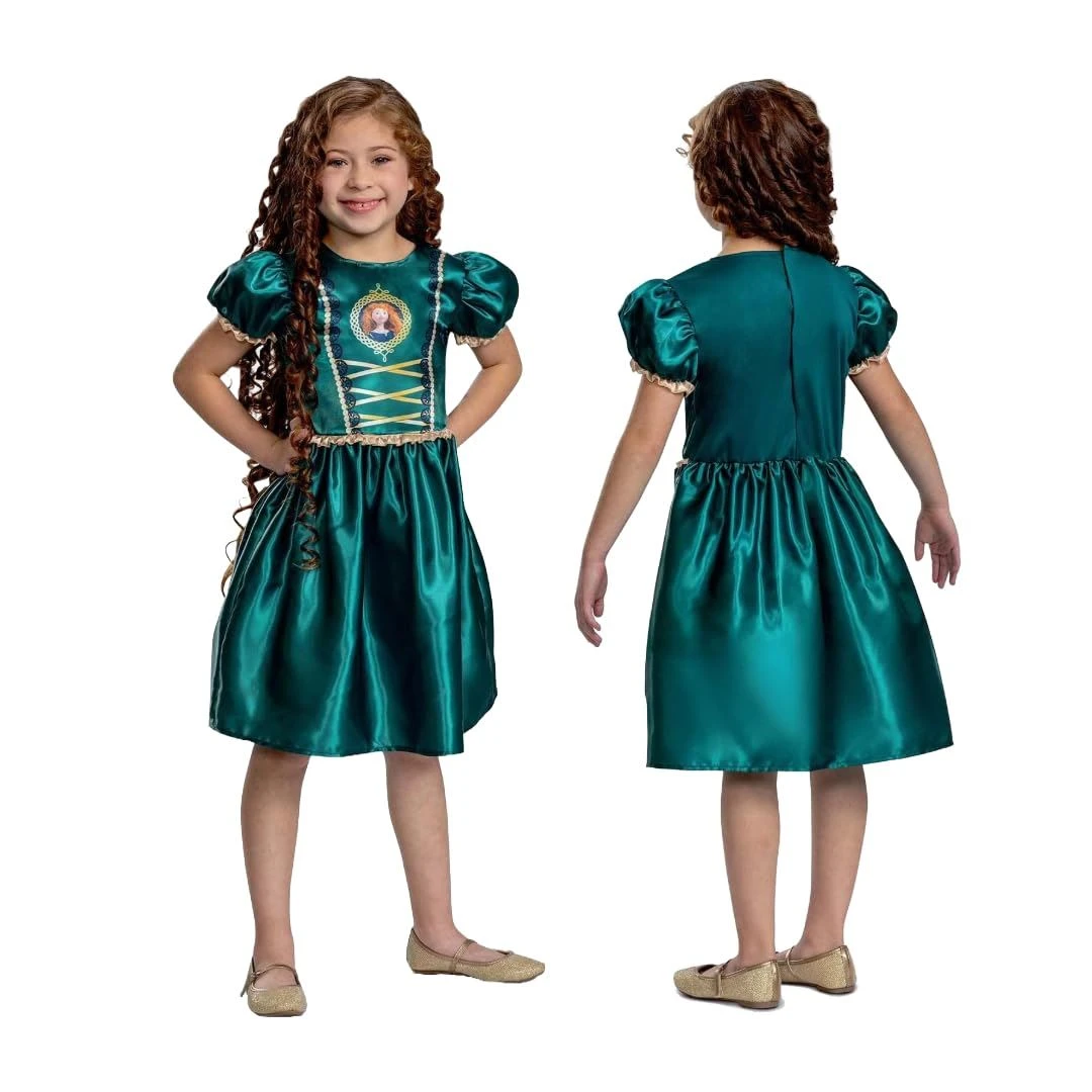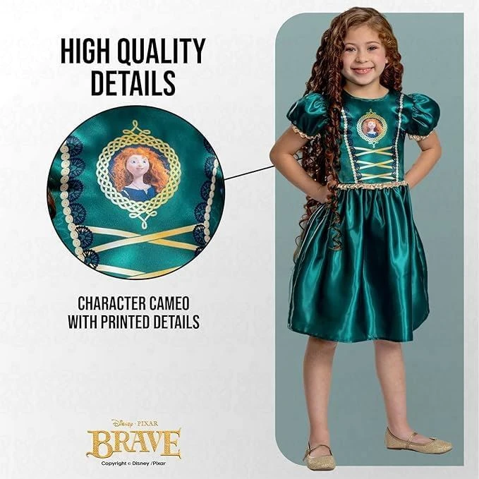 Se alla tua bambina piacciono l’avventura e la libertà, il nostro costume ufficiale della Principessa Merida della Disney è probabilmente quello che fa per lei. Include vestito.Ispirato all’abito di Merida di Ribelle Brave, questo abito da sogno ha tutti i dettagli magici che ti aspetteresti. Il corpetto presenta una treccia e una scollatura dorate, insieme a un bel ritratto del personaggio e finiture dorate simili al velluto sull’orlo del vestito per completare il look.Disponibile in una gamma di taglie: XS (3-4 anni), S (5-6) e M (7-8); si prega di fare riferimento alla tabella delle taglie per ulteriori dettagli.Il nostro design è sicuro per i bambini, rispetta gli Standard di Sicurezza EU e UK ed ha il marchio di sicurezza CE.
