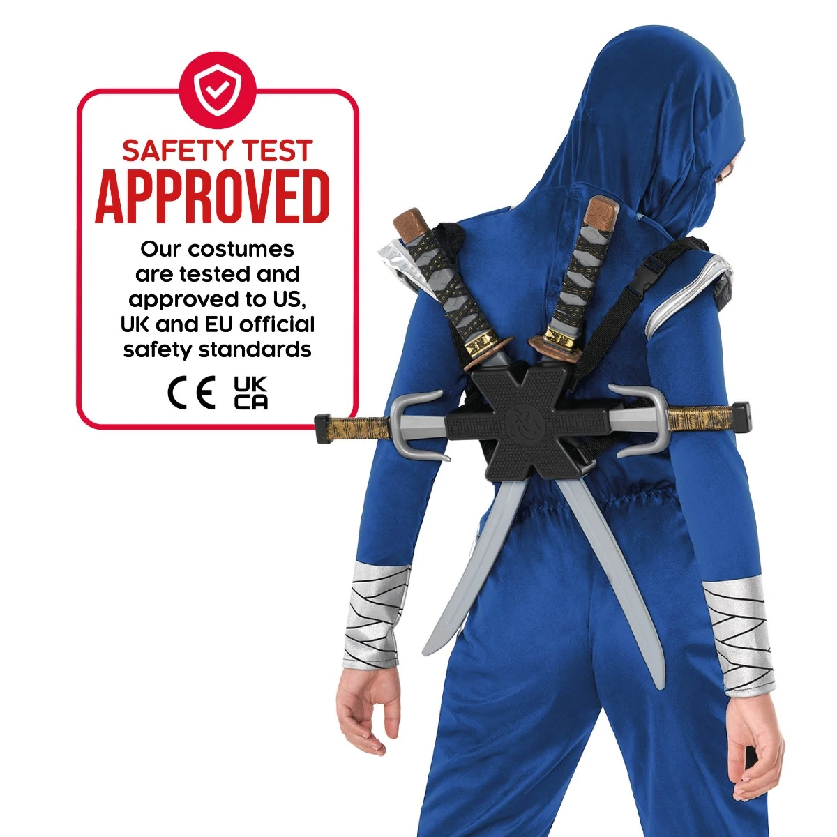Costume Ninja Blu E Argento Per Bambini Con Zaino