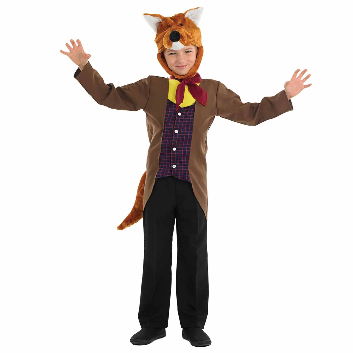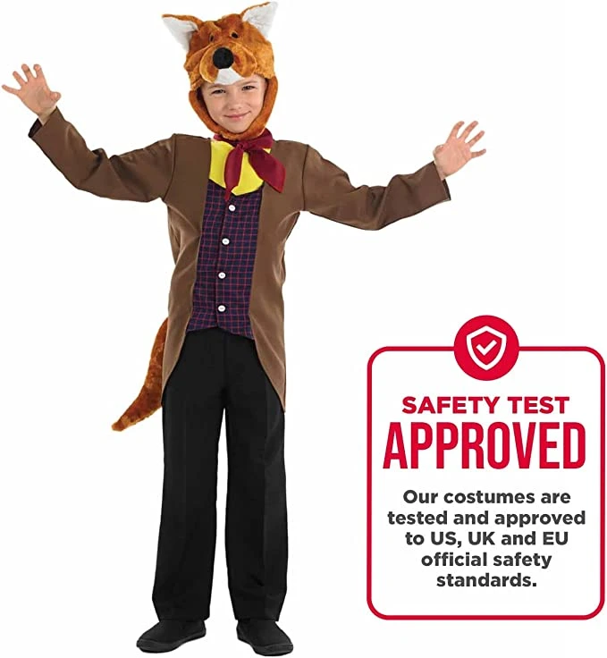 Include: una giacca marrone con coda staccabile, gilet a quadri blu e rosso incorporato, una cravatta rossa e un copricapo di volpe finta.Questo costume per bambini è disponibile in taglia: S, M, L, XL. Usare l’immagine di riferimento per la misura delle taglie. Materiali di alta qualità, facile da indossare e resistente.Sicuro per i bambini: rispetta gli Standard di Sicurezza EU e UK ed ha il marchio di sicurezza CE.