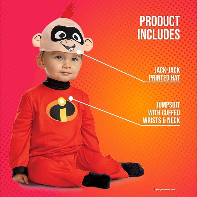 Attention all super-parents! Get ready to unleash the cuteness overload with our officially licensed Disney Incredibles Jack Jack costume for babies! This adorable outfit is made of high-quality materials that are soft to the touch, comfortable to wear, and durable enough to withstand all of your baby’s super-powered antics. It’s perfect for fancy dress parties, Halloween or just a fun day at home pretending to save the world from evil villains. With its iconic design, your little one will be the talk of the town and the envy of all their baby friends. So, what are you waiting for? Suit up your baby in this incredible Jack Jack costume and let the superhero adventures begin! Don’t miss out on the chance to create some unforgettable memories with your little hero. Buy now and become the ultimate super-parent!