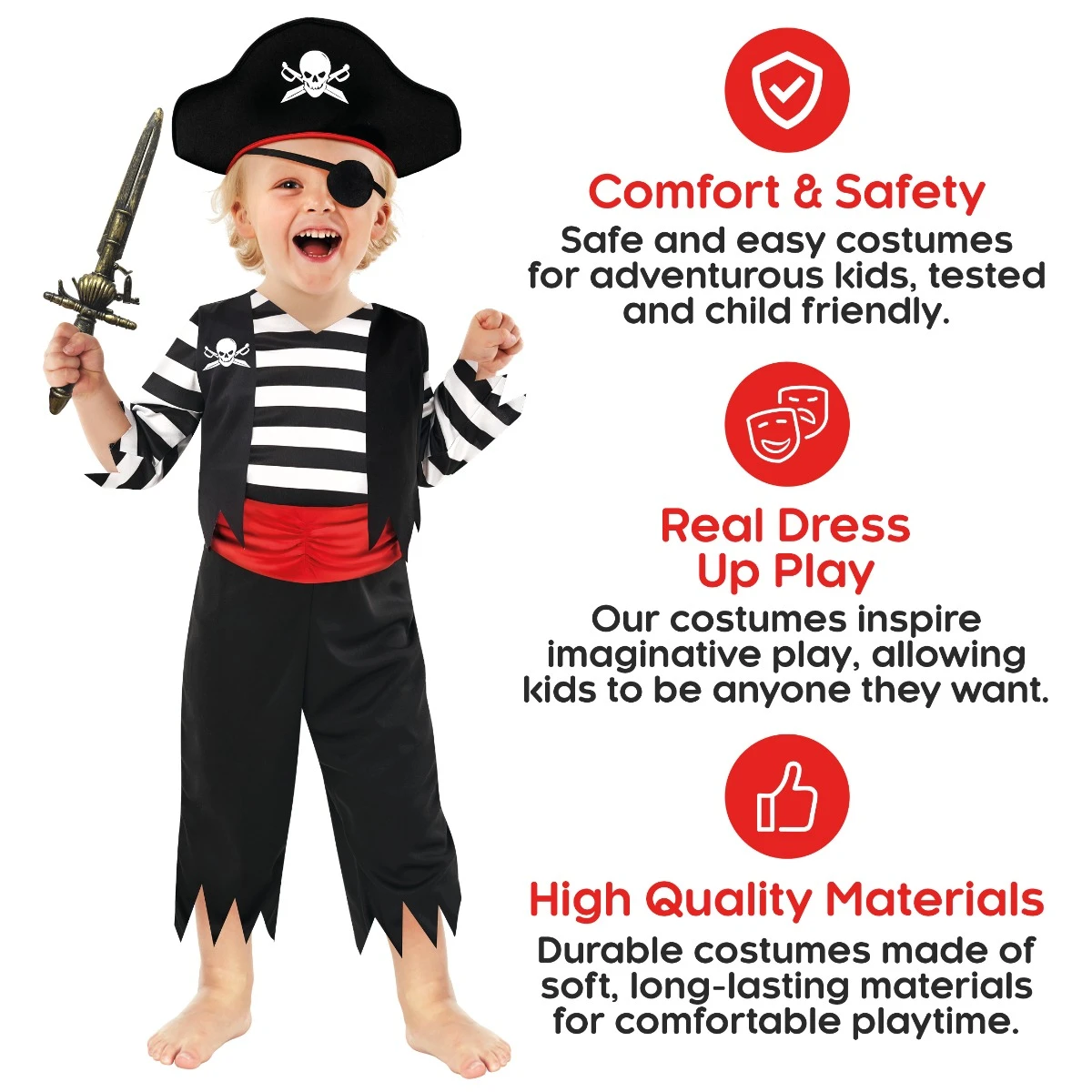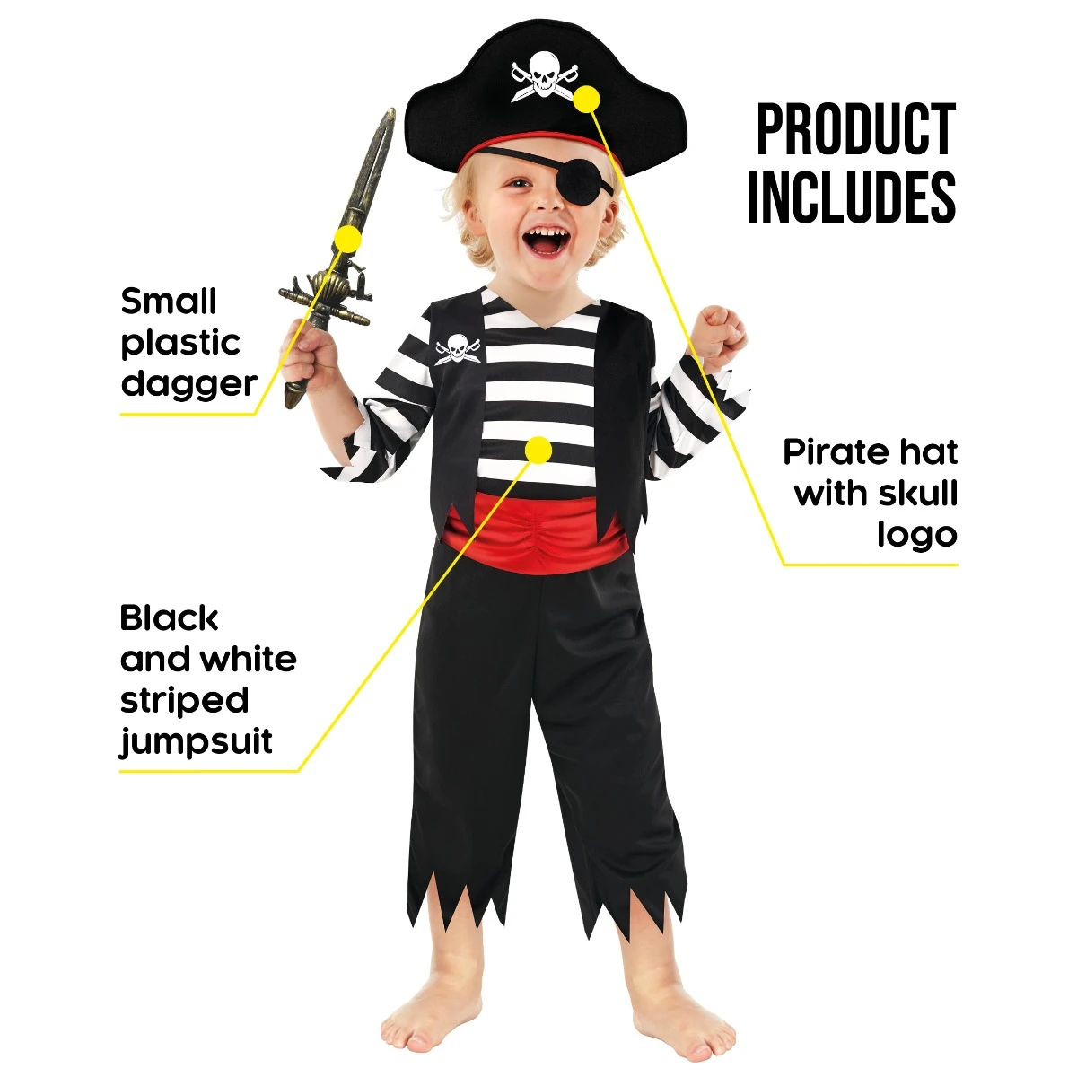 Ehilà, amico! Trasforma il tuo piccolo in un impavido pirata con il nostro adorabile costume da pirata per bambini. Perfetto per le giornate di travestimento, per le feste o per il semplice divertimento, questo costume scatenerà l’immaginazione del vostro bambino.
