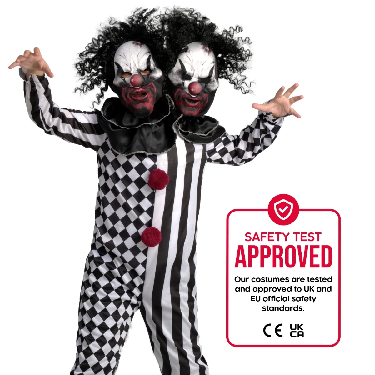 Anyone with a fear of clowns (coulrophobia by the way) might want to steer clear of your child this Halloween once they’ve pulled on the kids’ two headed clown costume. This exclusive design created by Morphsuits answers the question: “is there anything scarier than a clown?” Of course there is: two clowns!