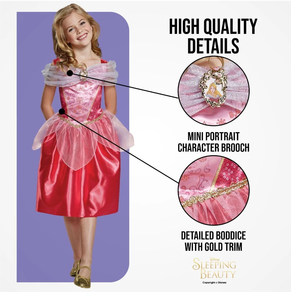 Assicurati di non addormentarti nel bosco con il nostro costume ufficiale Disney Princess Aurora; include un vestito.Ispirato all’abito di Aurora della Bella Addormentata, questo abito da sogno ha tutti i dettagli magici che ti aspetteresti. Il corpetto ha un cammeo del personaggio di Cenerentola sulla scollatura, bordi in paillettes e maniche a rete a sbuffo, la delicata sovrapposizione delle gonne e la sottoveste incorporata danno la forma del vestito per completare il look.Disponibile in una taglia: S (5-6) e M (7-8); Usare l’immagine di riferimento per la misura delle taglie.Il nostro design è sicuro per i bambini, rispetta gli Standard di Sicurezza EU e UK ed ha il marchio di sicurezza CE.