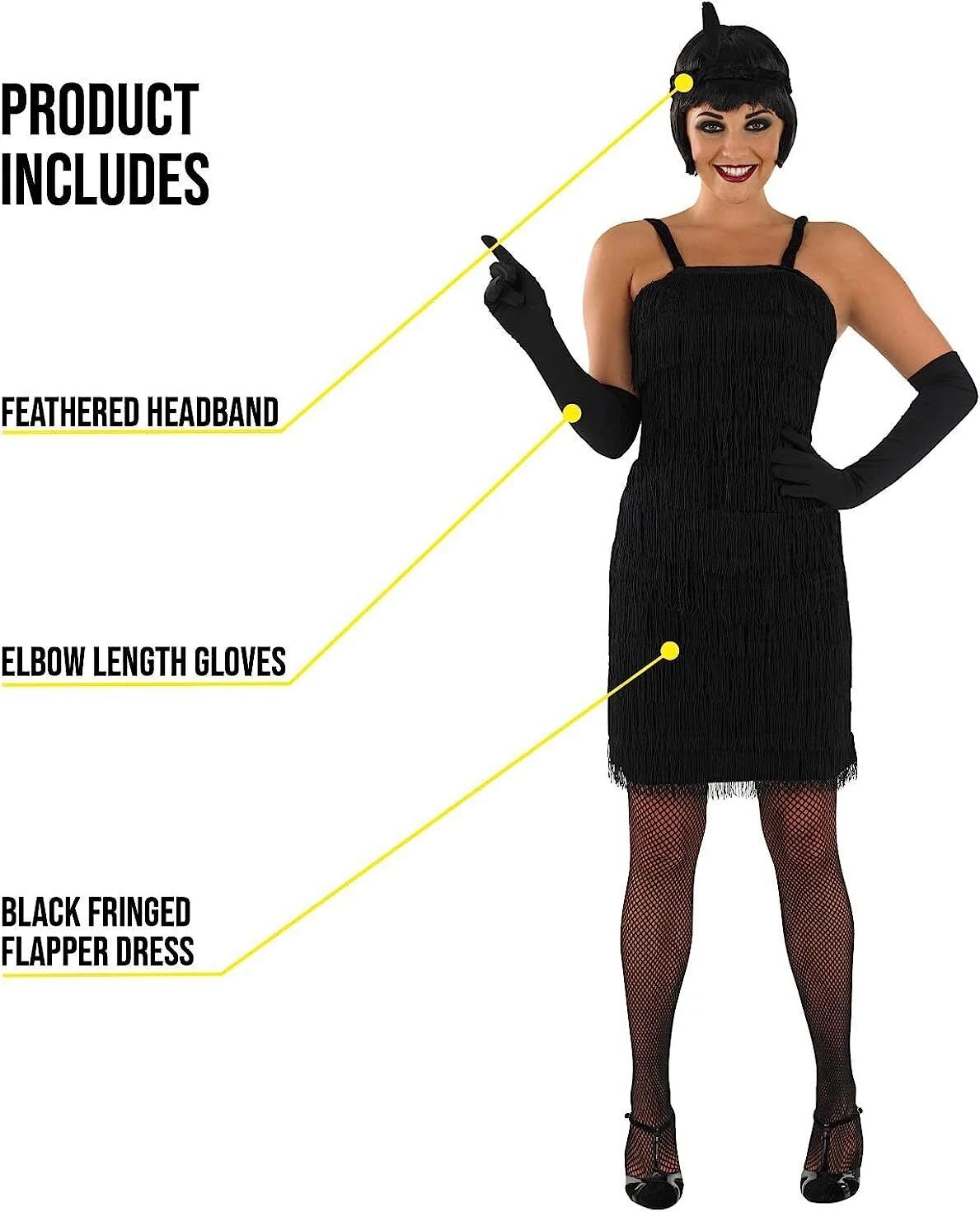 Step back into the roaring 20’s and the world of the Great Gatsby with the women’s 20’s flapper girl dress costume. Fringed and fierce, this flapper dress and accessories are perfect for decade-themed parties and Halloween events too. The women’s 20’s flapper girl costume includes: dress, 20’s style gloves and headdress.